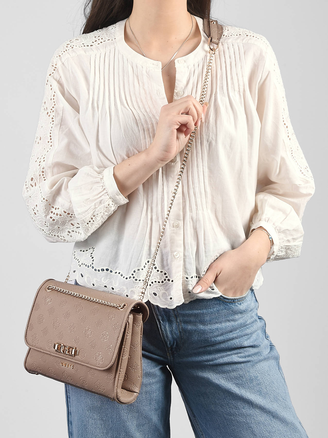 Le sac bandoulière ANISE GUESS en P.U allie élégance et fonctionnalité pour un look chic au quotidien. Son extérieur lisse et structuré est équipé d’une poche au dos pour garder vos essentiels à portée de main, tandis que le rabat avec fermeture aimantée assure sécurité et praticité. Conçu pour un porté en bandoulière, il offre un style moderne et polyvalent, idéal pour vos déplacements urbains. À l’intérieur, deux compartiments permettent d’organiser vos affaires, complétés par une poche zippée pour les objets précieux et trois emplacements pour cartes bancaires, facilitant l’accès à vos indispensables tout en gardant vos effets personnels parfaitement rangés. Léger et raffiné, ce sac est idéal pour accompagner vos tenues de jour comme de soirée. Son design minimaliste et ses finitions en P.U apportent une touche sophistiquée et contemporaine, faisant de ce sac un accessoire pratique et stylé qui allie esthétique et organisation.